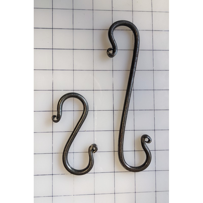 This listing is for a set of round stock S Hooks made here in our shop. The small is about 4 inches and large is 8 inches. They may vary a tad beings that they are handmade here in our shop in Ohio